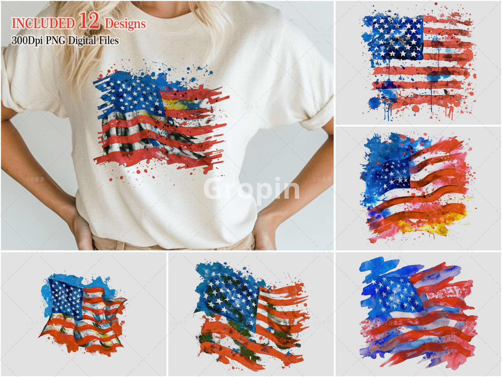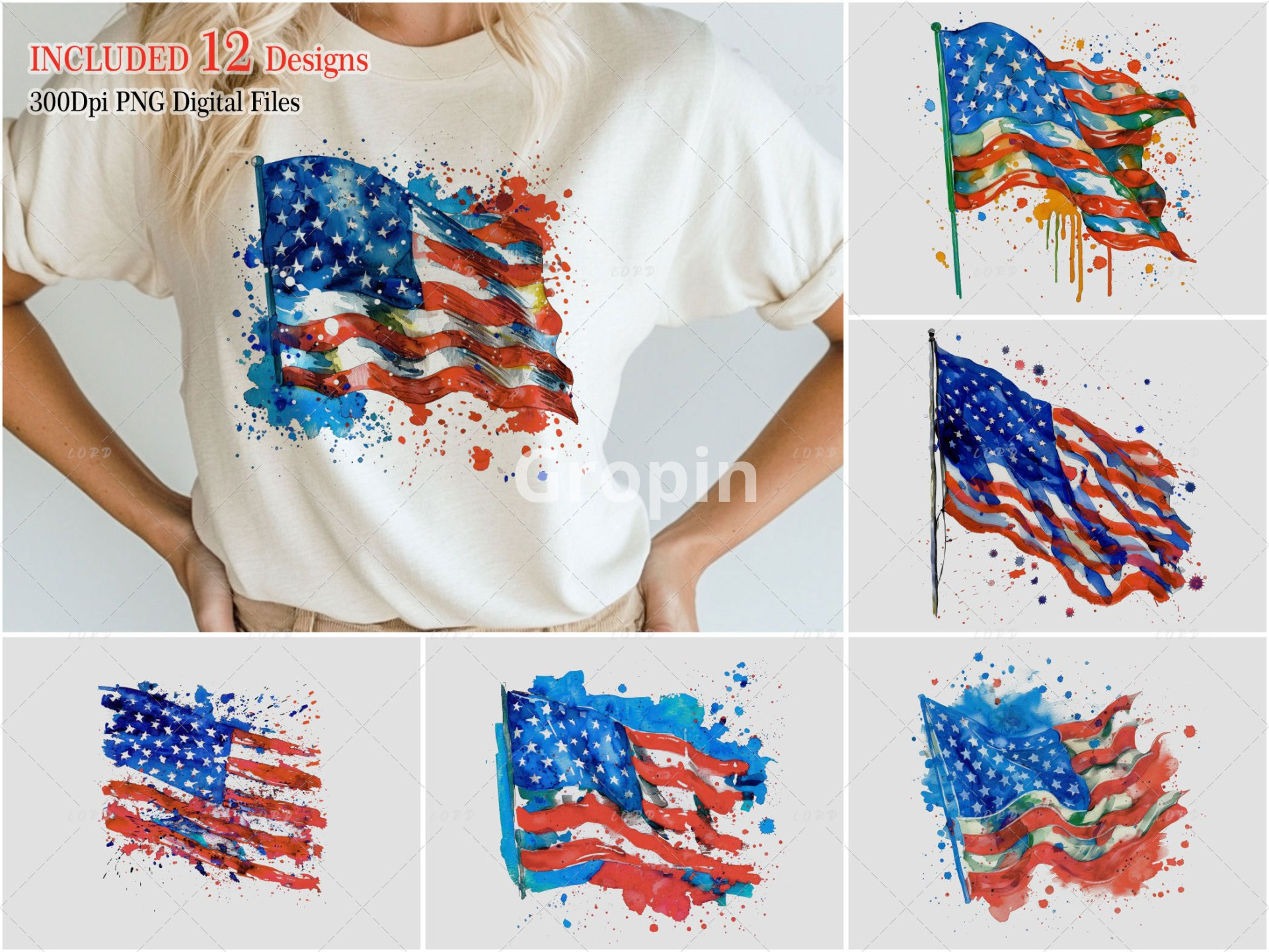 Celebrate your patriotism with this 12-piece watercolor American flag sublimation design bundle! These high-quality PNG files feature beautiful, hand-painted American flag designs, perfect for adding a patriotic touch to your custom T-shirts, mugs, home decor, and other sublimation projects. Each design is created in vibrant watercolor, ideal for 4th of July, Memorial Day, or any occasion to show your love for the USA. Perfect for personal crafting or small business use.