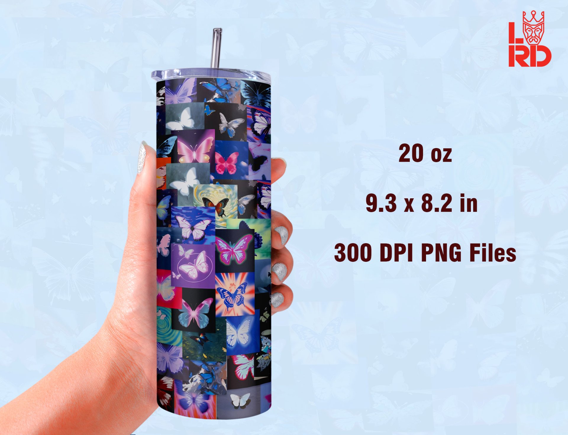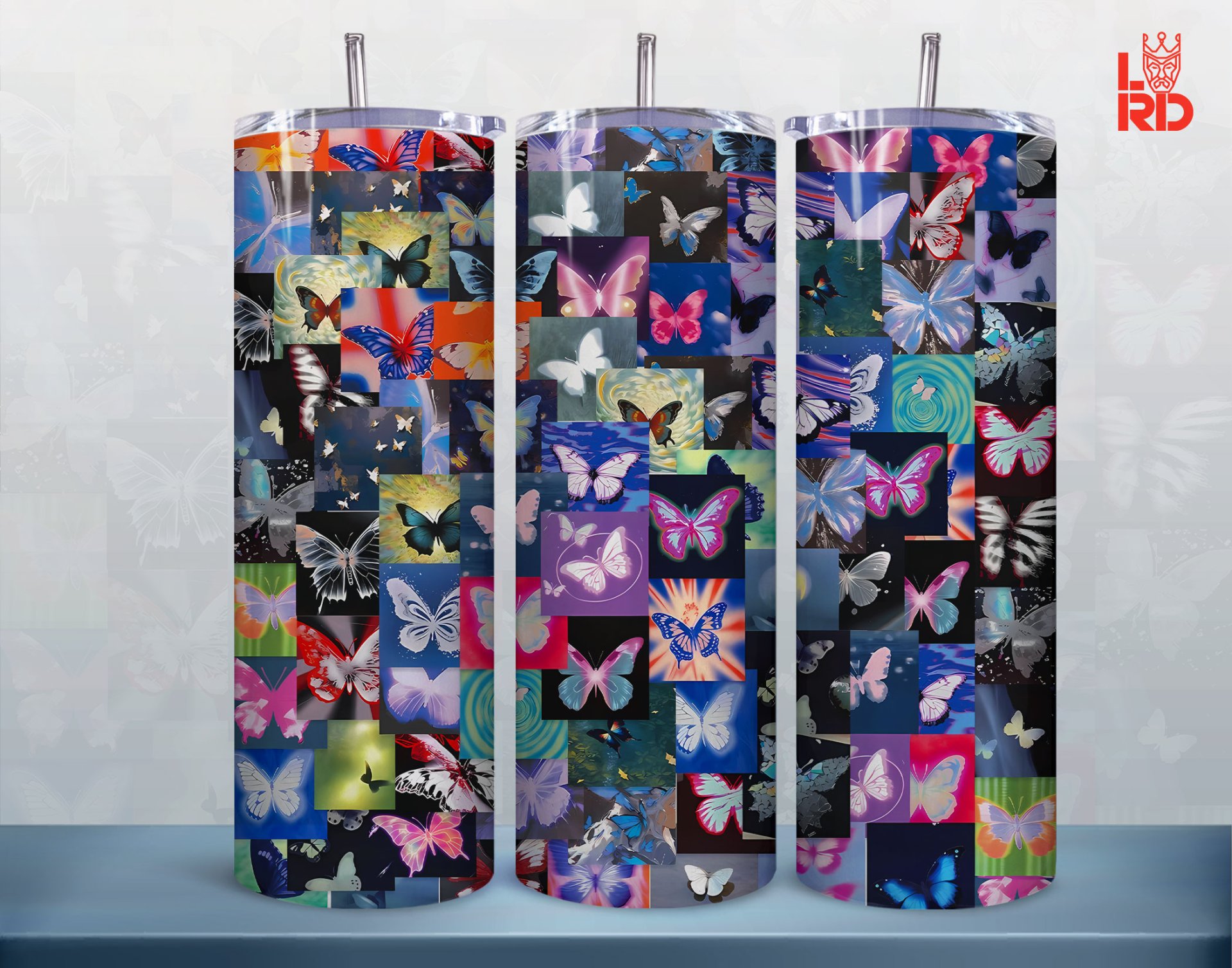 Watercolor Butterfly Design 20oz skinny tumbler Sublimation Wrap PNG
